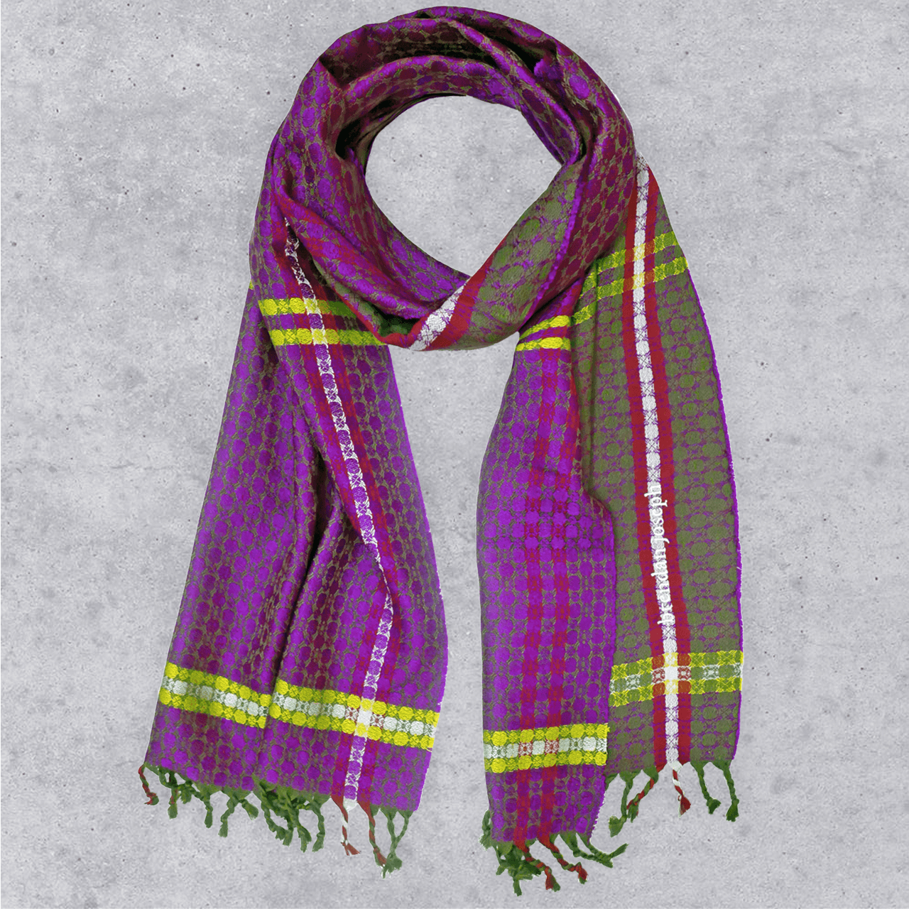 The colours in this scarf are inspired by one of my first visits to what I used to call 'My Secret World', an attempt to find the top of the hill using these paths, without the use of a map, and before my way... As I explored I came across plants of all colours, eventually beating down thickets of heather and finding myself in the middle of a golf course on what I learnt was George's Hill, an entirely different peak.